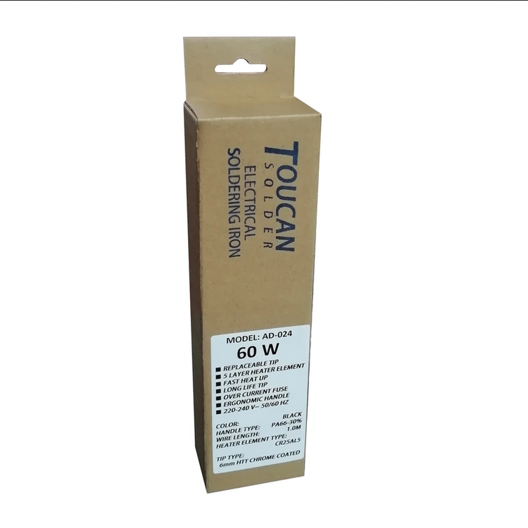هویه ۶۰ وات مدل توکان یک ابزار لحیمکاری سبک و قابلاعتماد است که گرمای کافی برای کارهای الکترونیکی عمومی و تعمیرات برد را فراهم میکند. با توان ۶۰ وات، این هویه برای نصب و جداسازی قطعات الکترونیکی، لحیمکاری SMD و پروژههای DIY مناسب است و کنترل خوبی روی دما ارائه میدهد.