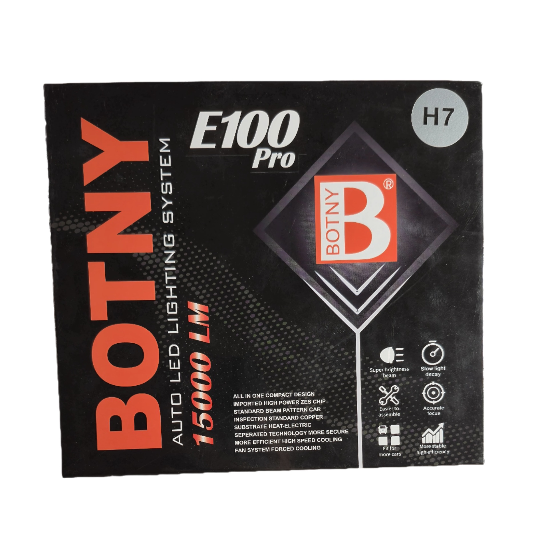 هدلایت بوتنی اچ هفت | BOTNY E100 PRO H7 HEADLIGHT : شدت نور 15,000 لومن سیستم فن خنک کننده قوی الگوی پرتو نور استاندارد چیپ قدرتمند ZES تمرکز پرتو نور دقیق راندمان بالا و پایدار به منظور آسودگی خیال شما مشتریان عزیزاین محصول دارای گارانتی یک ساله بی قید و شرط شرکتی میباشد.